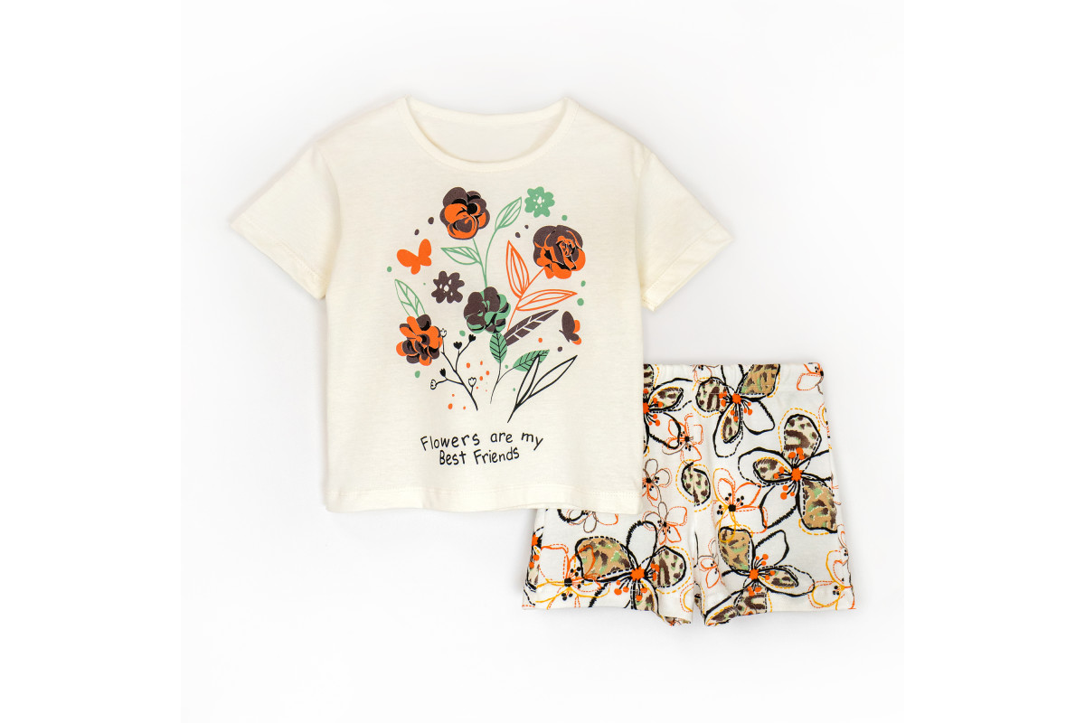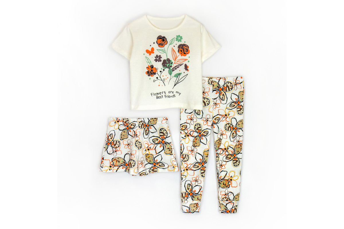 Піжама для дівчинки 3 в 1 футболка шорти штани з принтом Flowers