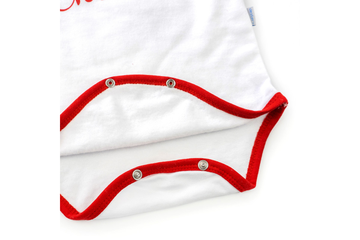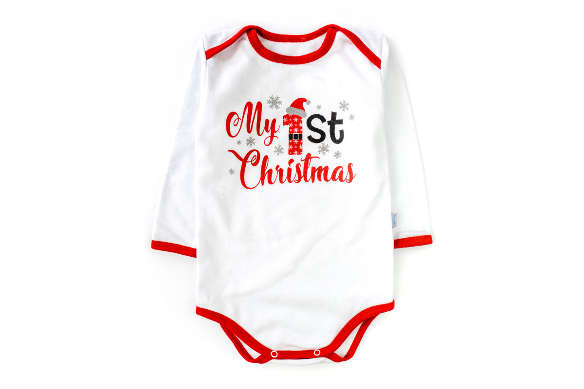 Бодік виготовлено з натурального трикотажного полотна "Футер". Боді з футеру дуже приємний до тіла, оскільки це натуральний матеріал, він пропускає повітря і дозволяє шкірі дихати. Боди прикрашений милим принтом з написом "My first Christmas".