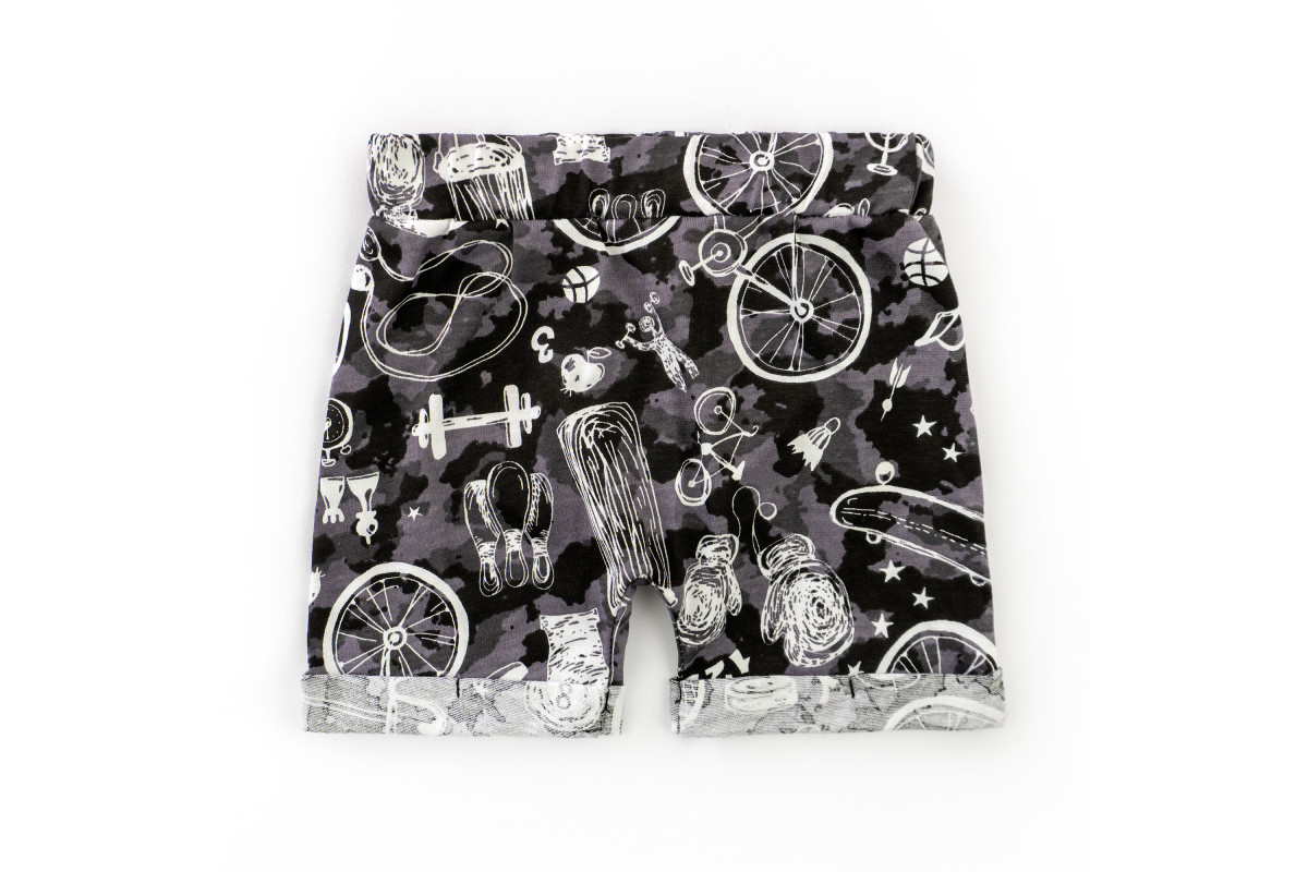 Шорти також чорного кольору з малюнком на широкій м'якій резинці.