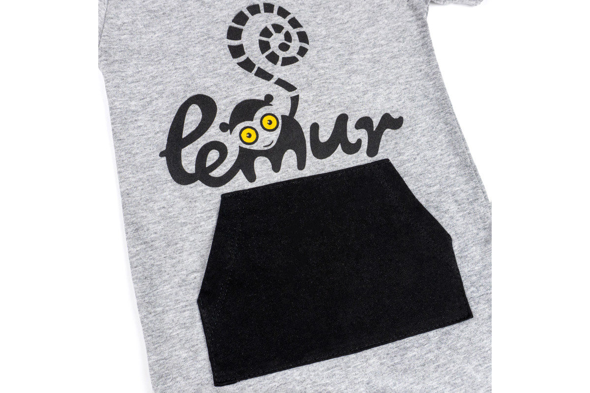 Модель прикрашена кишенею-кенгуру і принтом з милим лемурчиком.