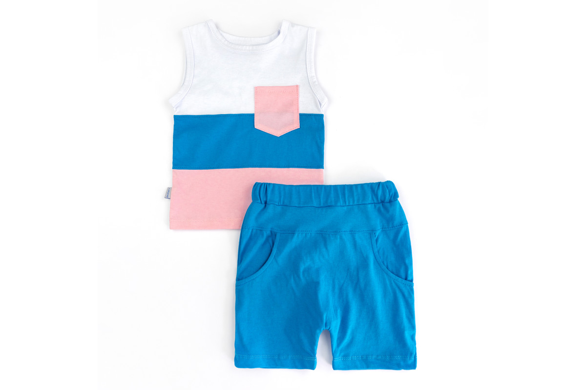 Яскравий костюм на літо - майка з шортами.Майка декорована накладною кишенею.Шорти з кишенями на шир..