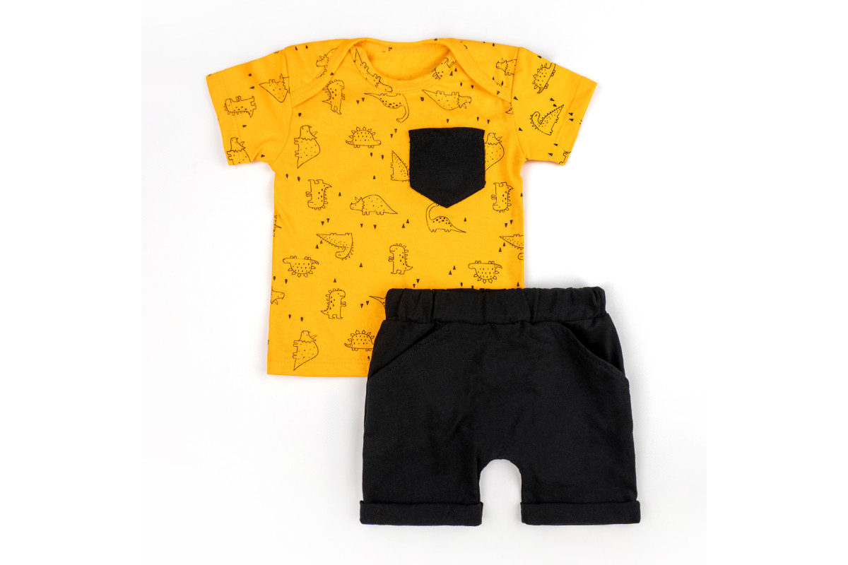 Дитячий костюмчик складається з футболки та шортів. Футболка має виріз - "човник" для зручності перевдягання.