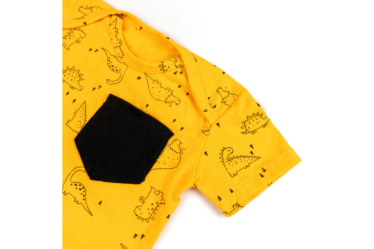 Дитячий костюмчик складається з футболки та шортів. Футболка має виріз - "човник" для зручності..