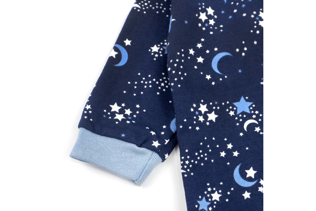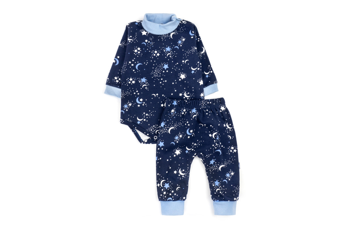 Костюм темно-синього кольору із блакитними зірочками.
