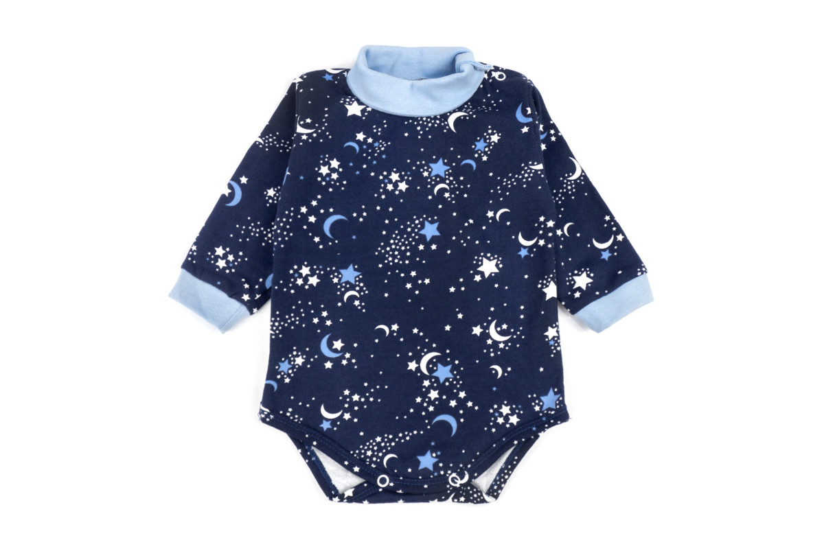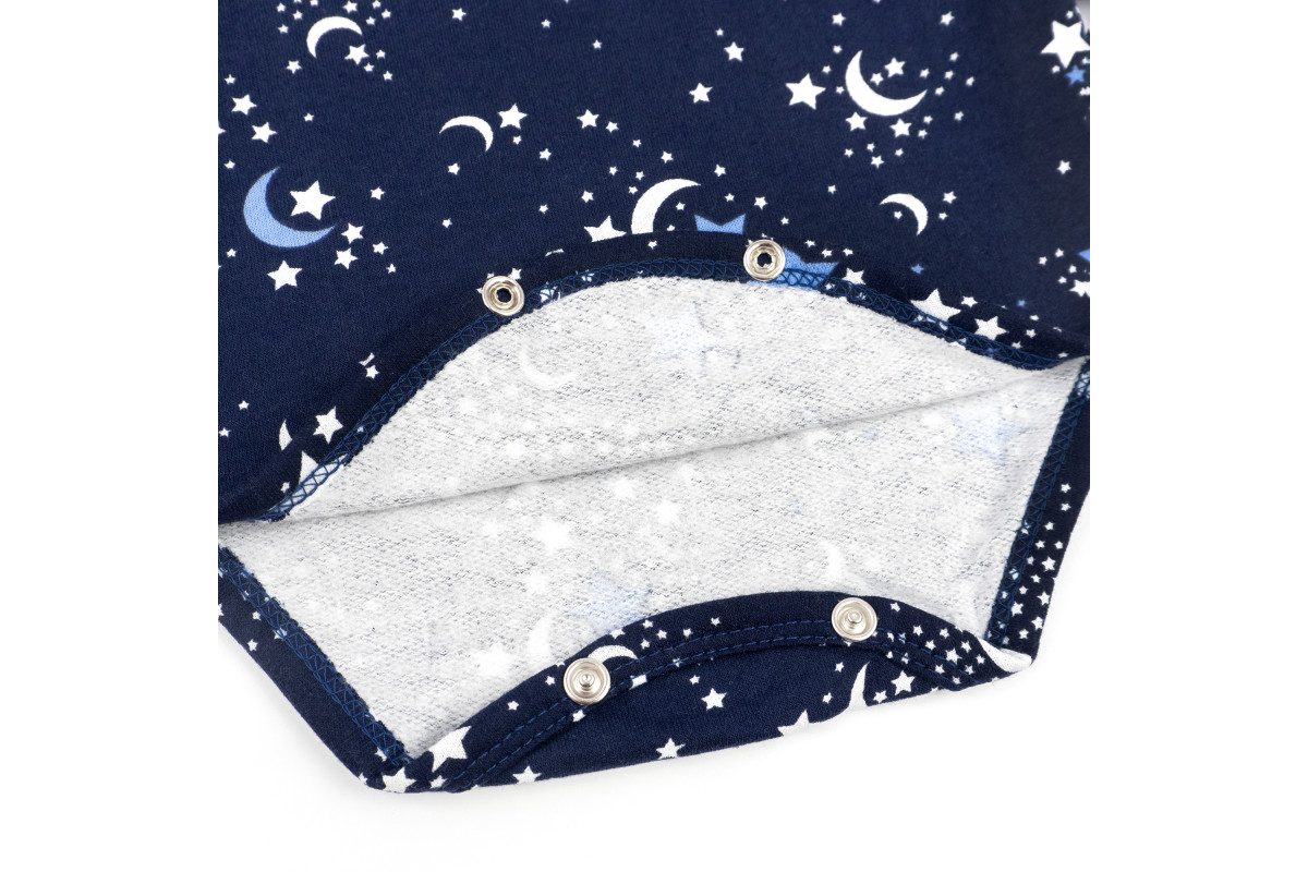 Дитячий набір із теплої тканини з начосом:- боді темно-синій з довгим рукавом та кнопочками внизу;- ..