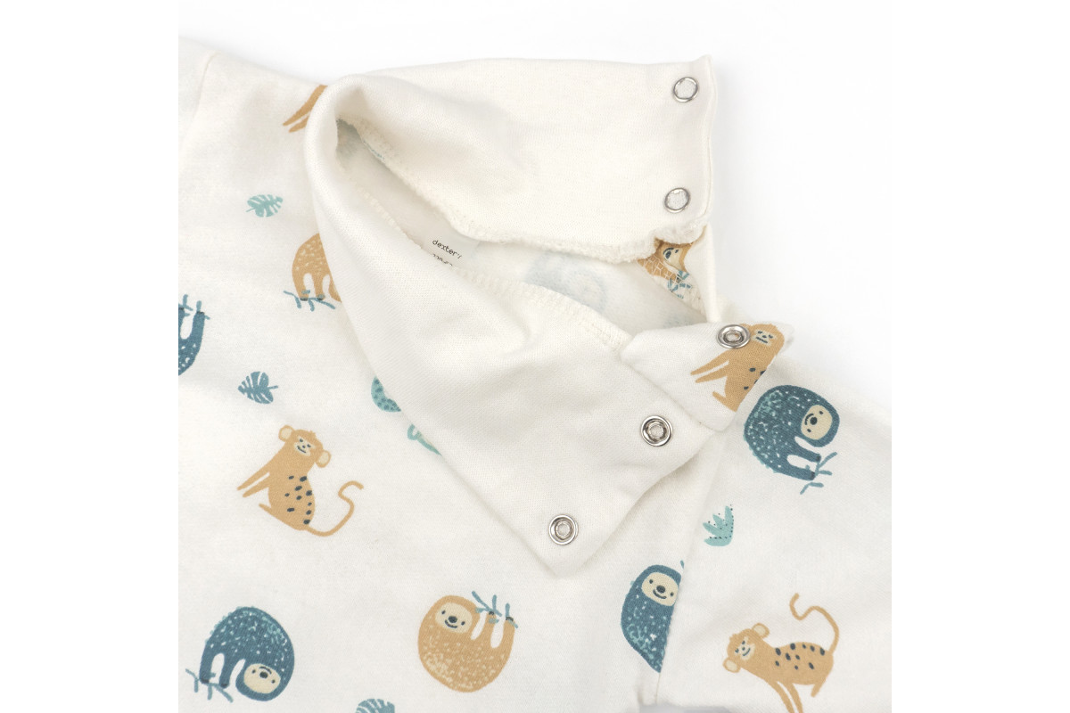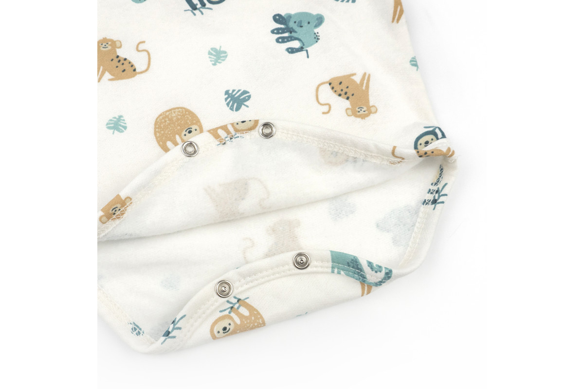 Продумана застібка на плечі полегшує переодягання. Кнопки внизу дозволяють швидко змінити підгузок, так щоб не знімати одяг повністю.