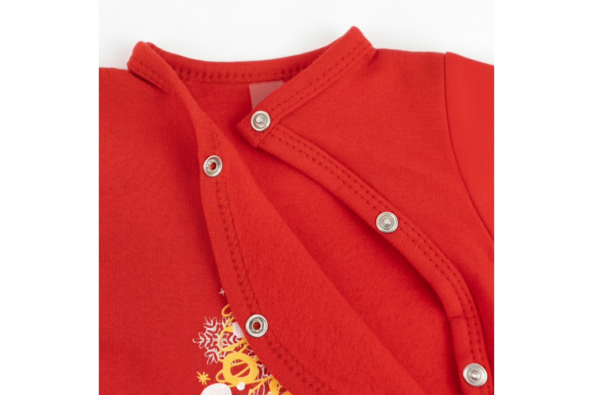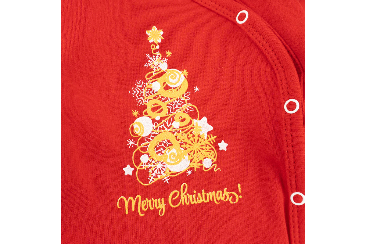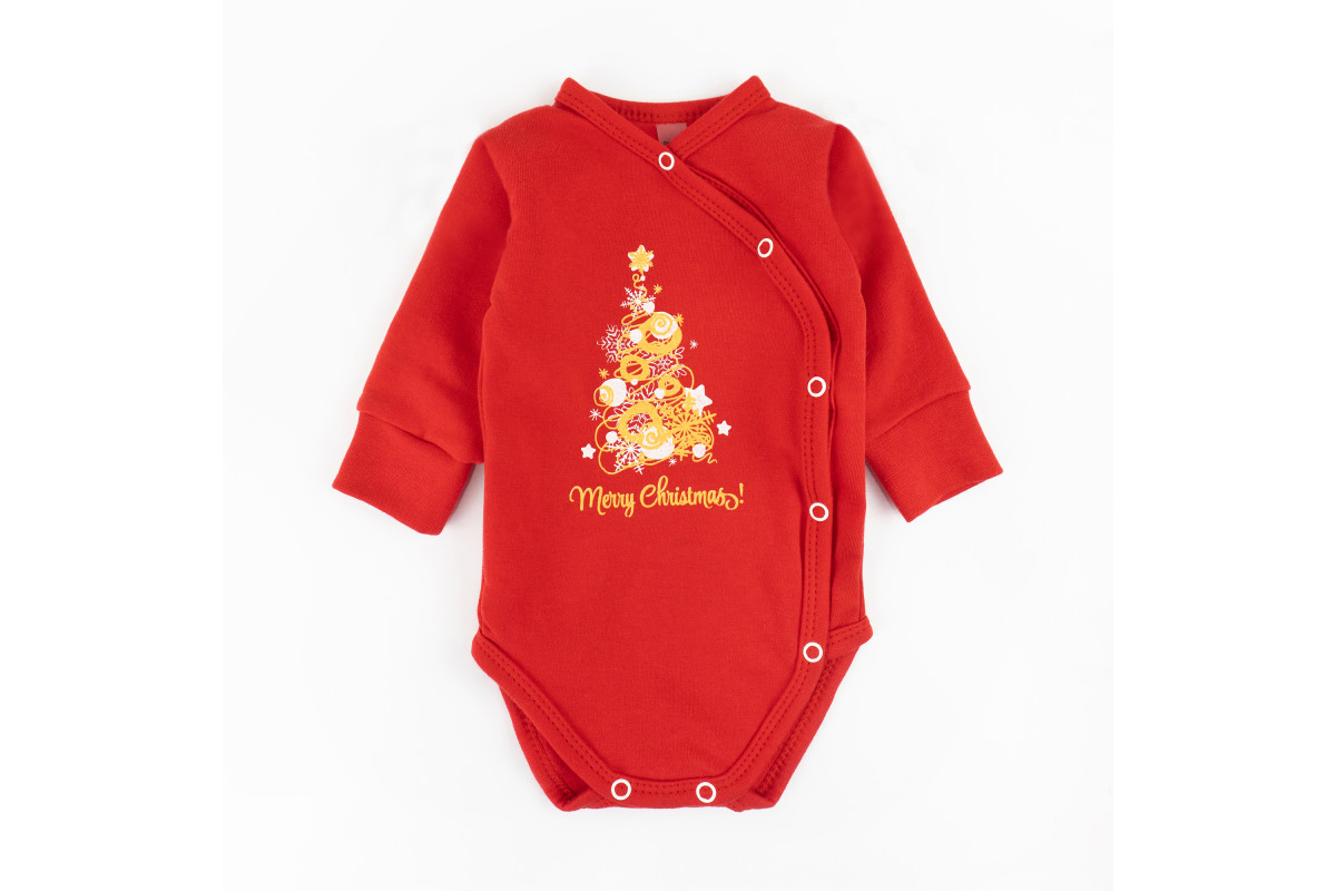 - боді із застібкою по всій довжині і золотистим принтом з ялинкою;