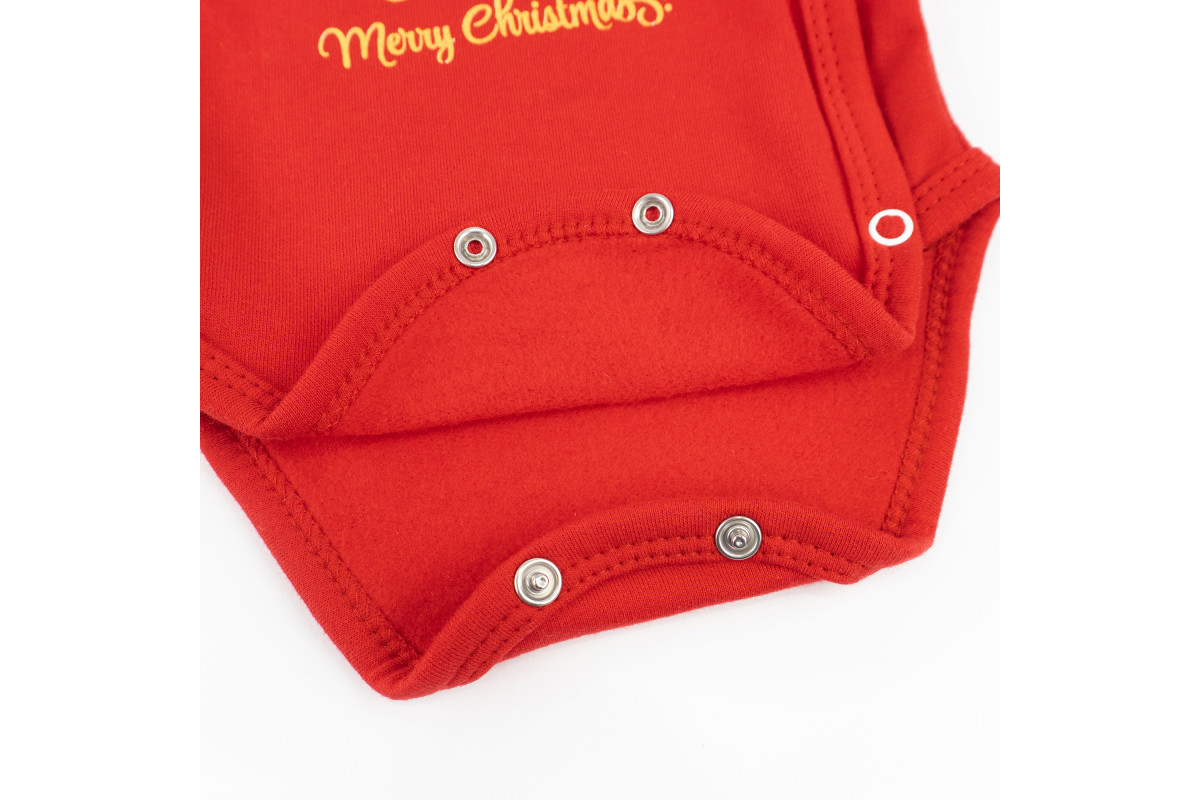 Боді з довгим рукавом і штанці.Боді червоного кольору прикрашений принтом з ялинкою і написом 'Merry..
