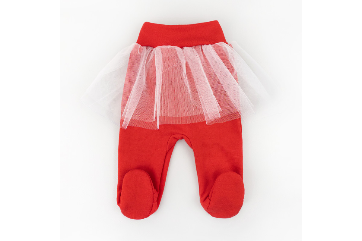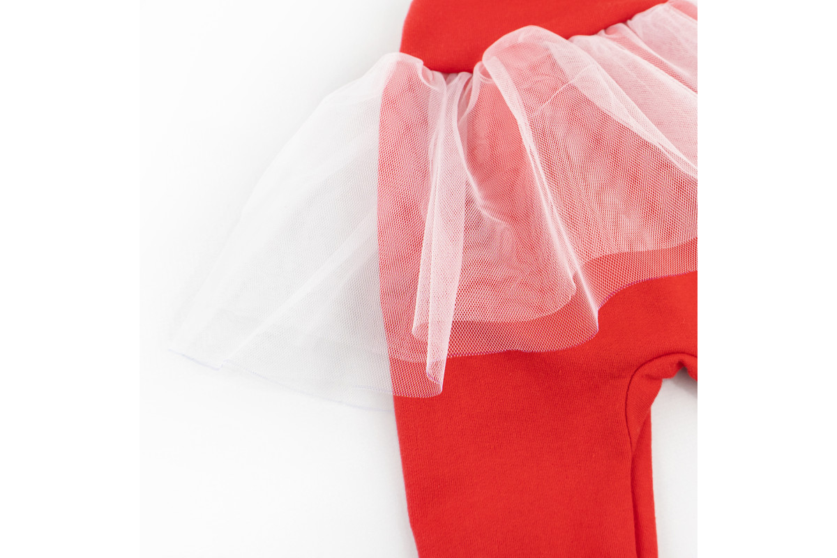 Ошатний новорічний комплект для дівчинки пошитий з червоного футера і декорований фатином.