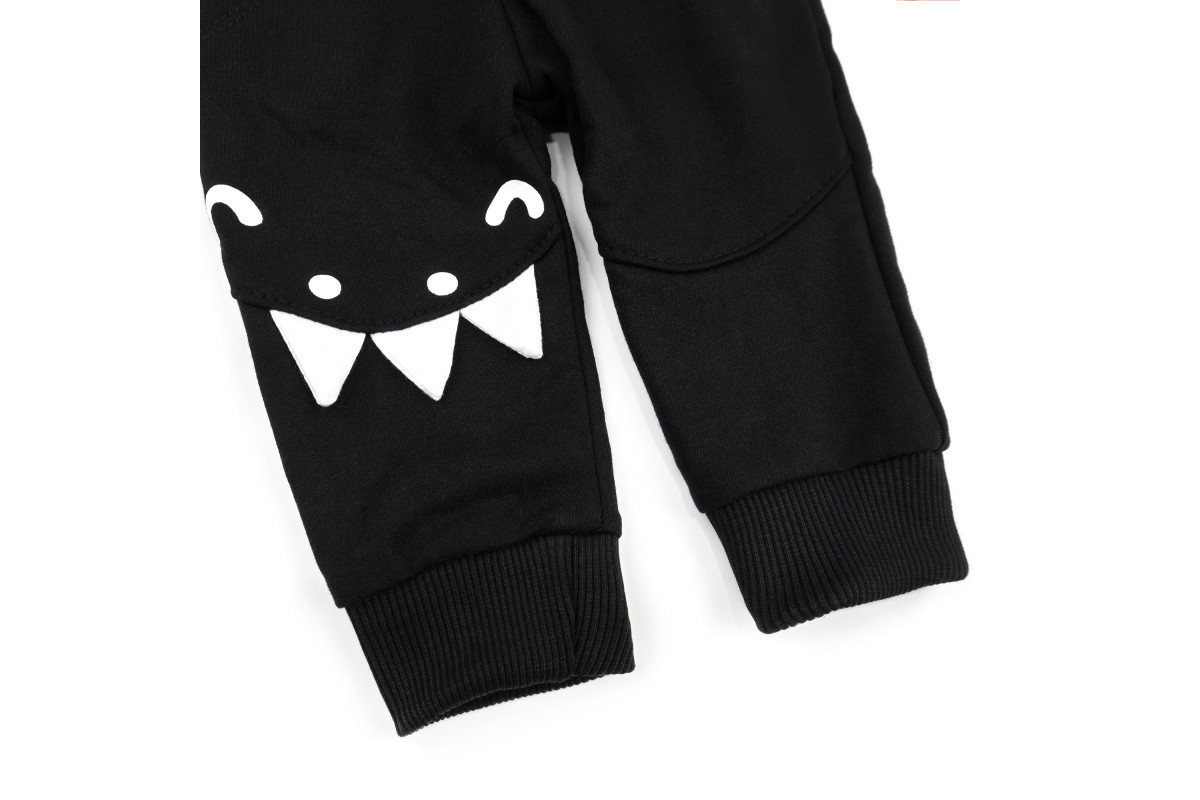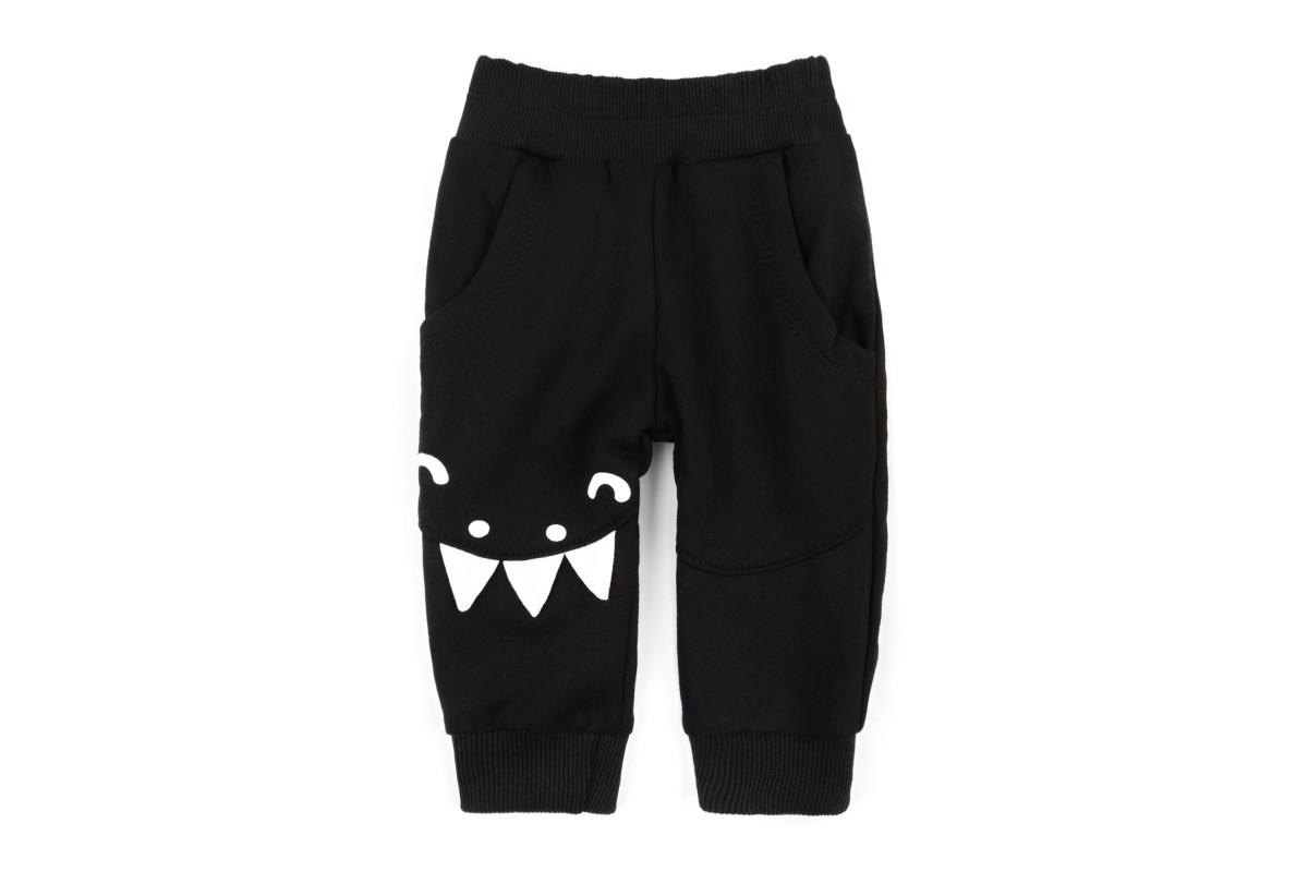 - штанів на резинці, з кишенями, є аплікація на коліні у вигляді зубів.