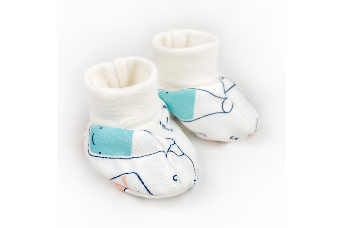 Пінетки для новонароджених білого кольору із милим принтом.Пошиті з інтерлоку - натуральної тканини,..